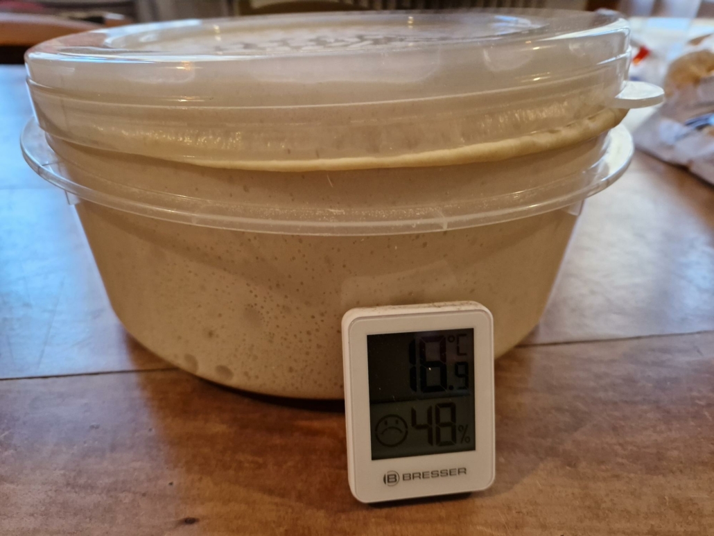 Copri e lascia lievitare l’impasto per almeno 12-18 ore a temperatura ambiente (dai 15° ai 18°C ) oppure in frigo per una maturazione più lunga (fino a 48 ore).